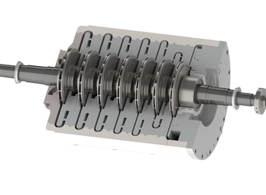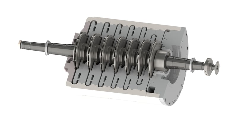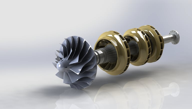 3D modeling of centrifugal compressor components (Rotor, Bundle, Casing, Bearing Housing, bolt connections, nozzles)
